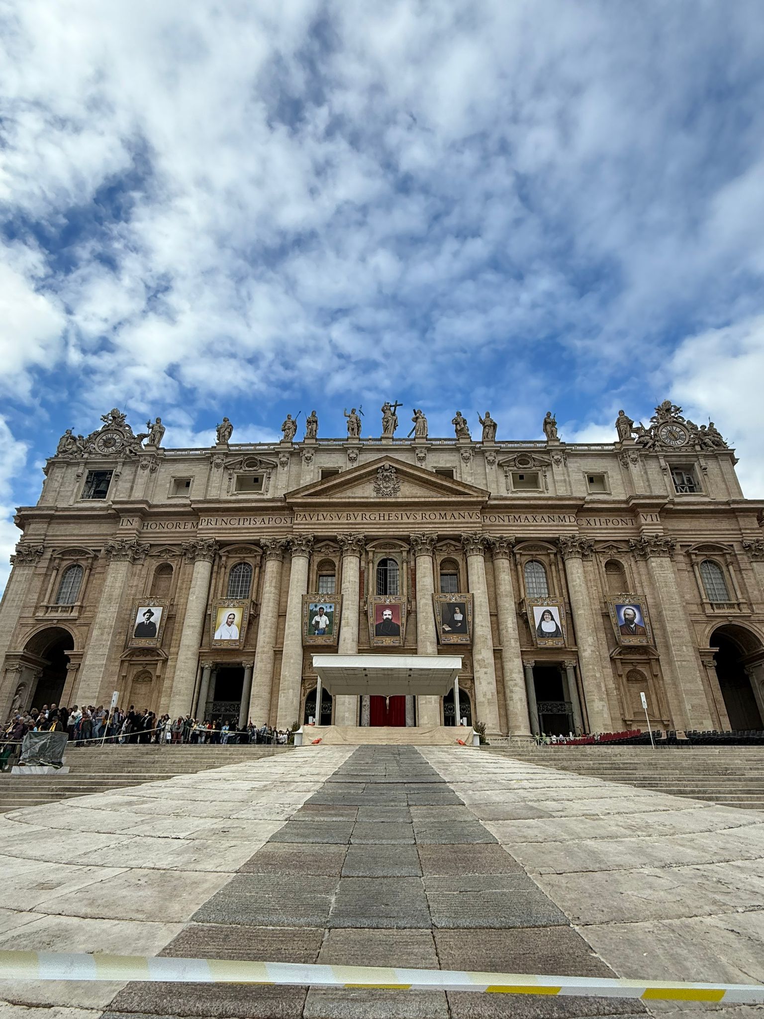 The front of St. Peter's. That day they unveiled the tapestries of the seven new saints about to be canonized.